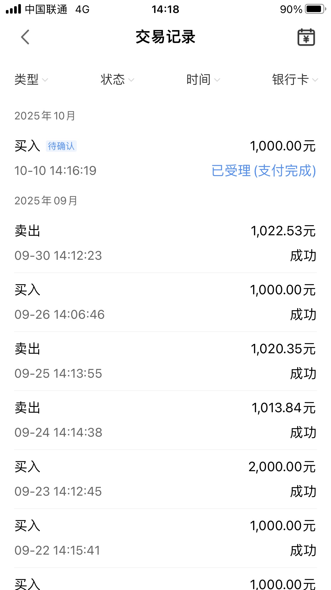 白酒创了8月份调整以来的新低,今天加仓1000(上图),如收盘翻红撤单,目前持仓