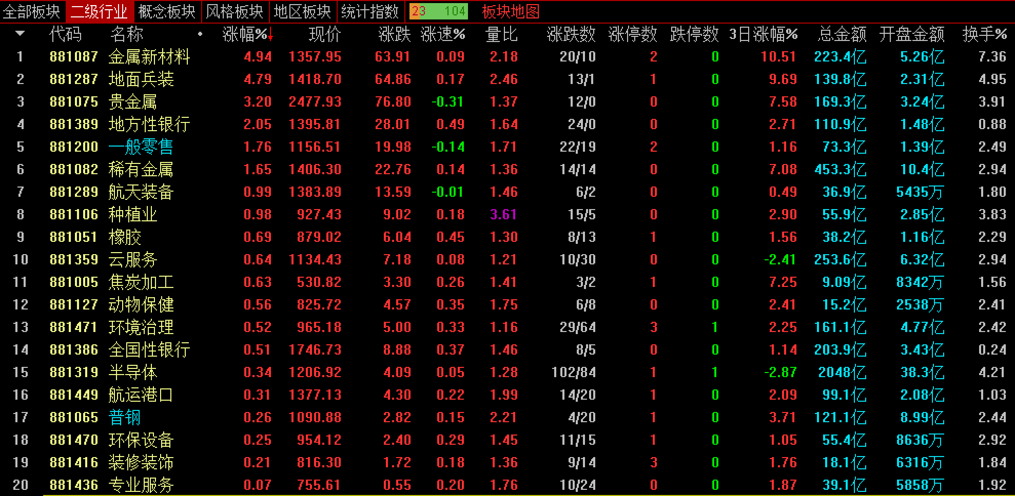 今天今市场虽说低开后往上走了走,但三大指数最后还是收绿下跌了。整体主要是围绕上方缺口反抽的调子,收盘时沪指还跌破了20日均线。情绪面回落较大,不过活跃资金在哪其实挺清楚的——有资金活跃的地方,机会才会更大。像自主可控芯片这一块,表现就明显偏强。现在我们看看板块趋势:#券商把脉:冲击小于4月 黄金坑再现?#