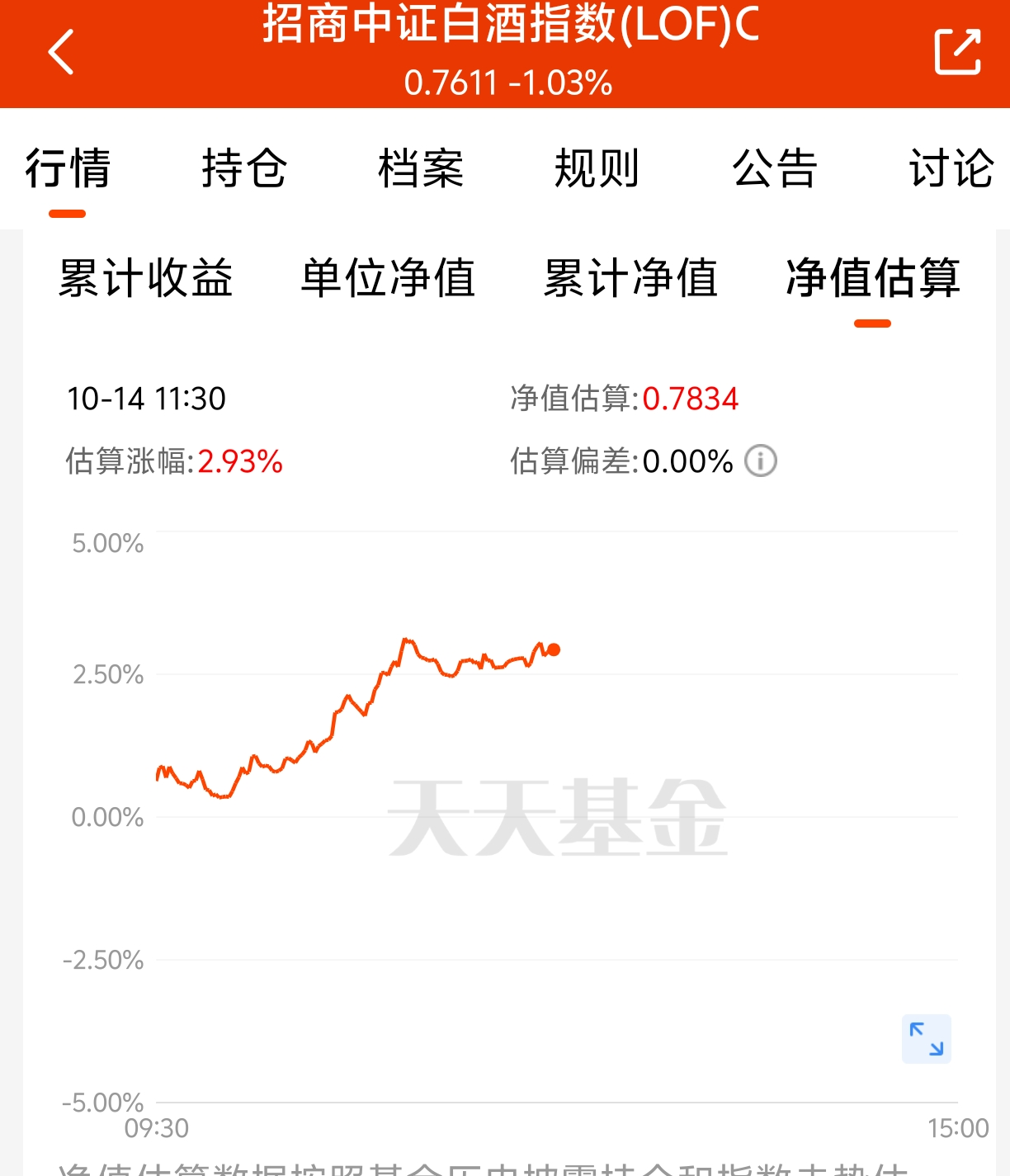 $招商中证白酒指数(LOF)C$ 受外围影响,今天大盘高开低走,指数分化。沪指强于双创指数!今天盘面上,大消费白酒走势相当强劲,最近白酒一直在磨底,有补涨需求!这不今天招商中证白酒估值涨幅2.93%,表现还是非常不错的,再有两三个月就要进入消费旺季,流星认为,大消费白酒还会有更好的表现!现在可以提前分批次布局,静待花开之时