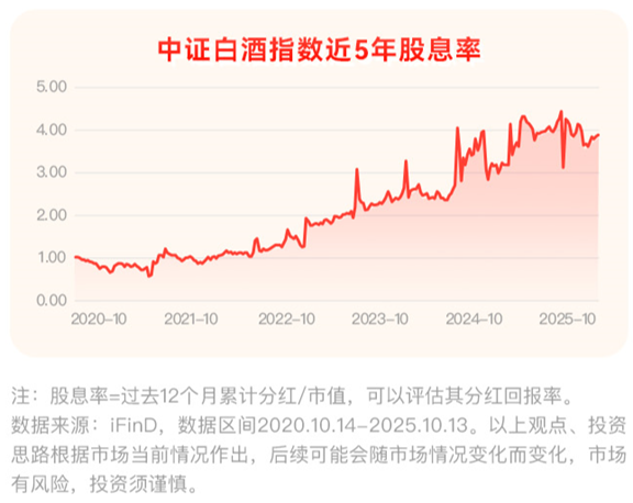 除此之外,中证白酒指数股息率近5年来持续上升,已达到3.88%,超过近五年80%的时间,提供了良好的分红回报。