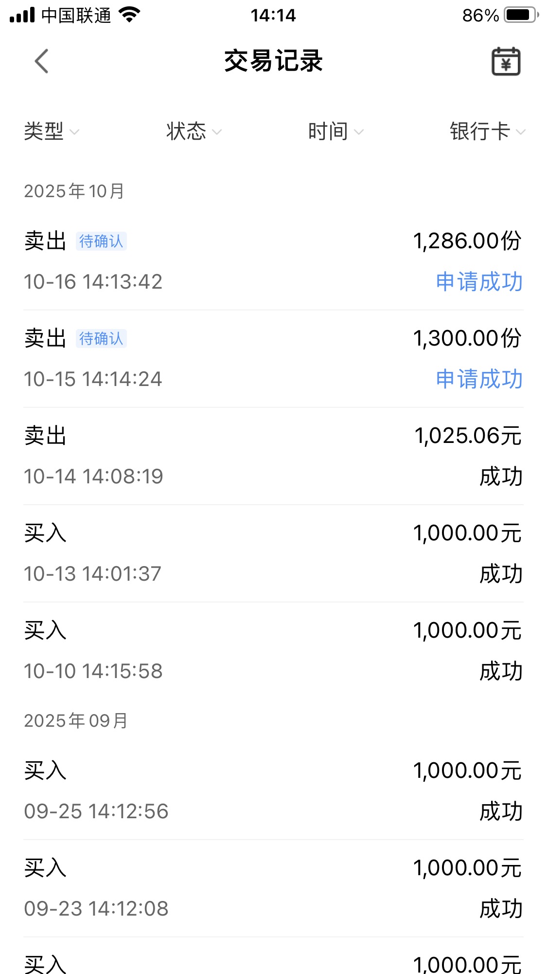 白酒T9月25日买入的份额,目前还持有1万。