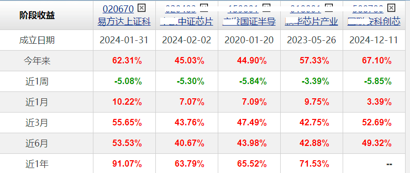 $易方达上证科创板芯片指数发起式A(OTCFUND|020670)$、$易方达上证科创板芯片指数发起式C(OTCFUND|020671)$跟踪科创板芯片指数,涵盖了中芯国际、海光信息、寒武纪等AI核心龙头,成长性非常高;20CM涨跌幅,有行情时进攻性特别强。