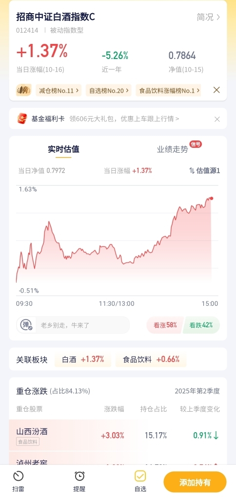 招商中证白酒指数C今日预估涨幅+1.37%!