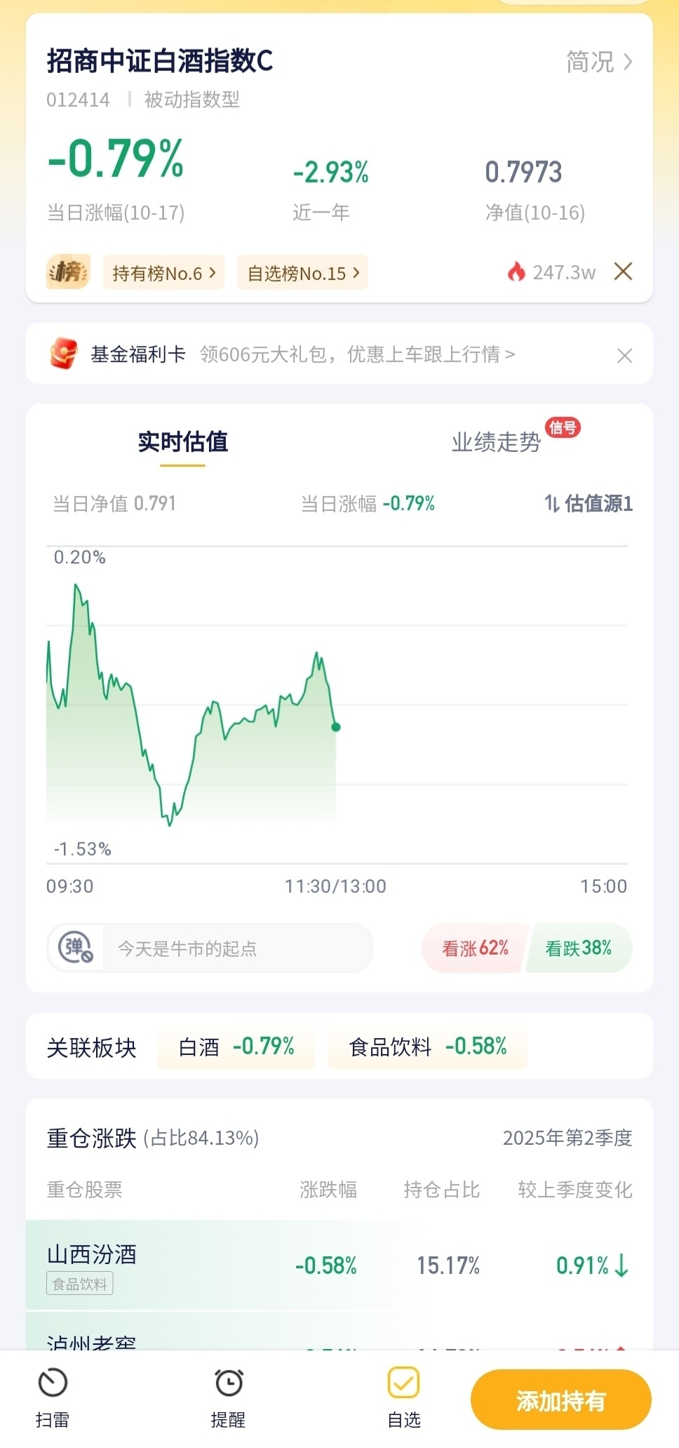 白酒今天也小跌了一下,估计是消费板块整体没太大动静,资金对白酒短期态度谨慎,它就小跌了。