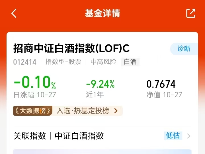 $招商中证白酒指数(LOF)C(OTCFUND|012414)$持仓的贵州茅台、五粮液等核心标的,作为跟踪中证白酒指数的基金,在临近消费旺季,叠加市场对内需刺激政策的期待下,有望同步受益。且眼下板块估值处于低位,逢低定投布局起来挺不错的。