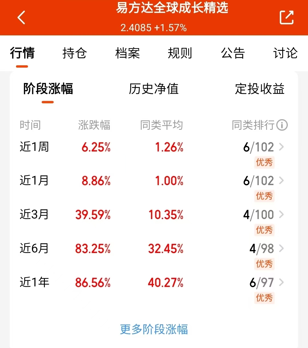 10月接近月底了,美联储再次降息确定性增加,全球科技类资产有望再次受益,近期科技板块有所回调,但是易方达全球成长精选混合(QDII)C012922回撤控制的很好,近三个月上涨34.12%,近半年上涨75.22%,基金经理前瞻性眼光得到验证啦大家也可以关注一下。