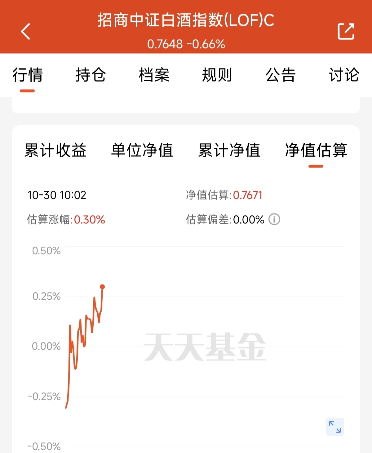 $招商中证白酒指数(LOF)C$ 这是聚焦白酒指数的指数基金。紧密跟踪中证白酒指数。聚焦白酒消费龙头。早盘估值上涨0.3%。紧跟指数的表现一直不错,目前白酒板块估值低。性价比也更高。四季度的修复上涨值得期待。