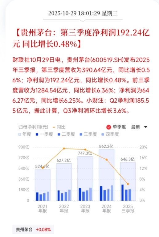 茅台老大哥也顶不住,三季报利润几乎0增长,不过便宜就是硬道理,今天走势反而低开反
