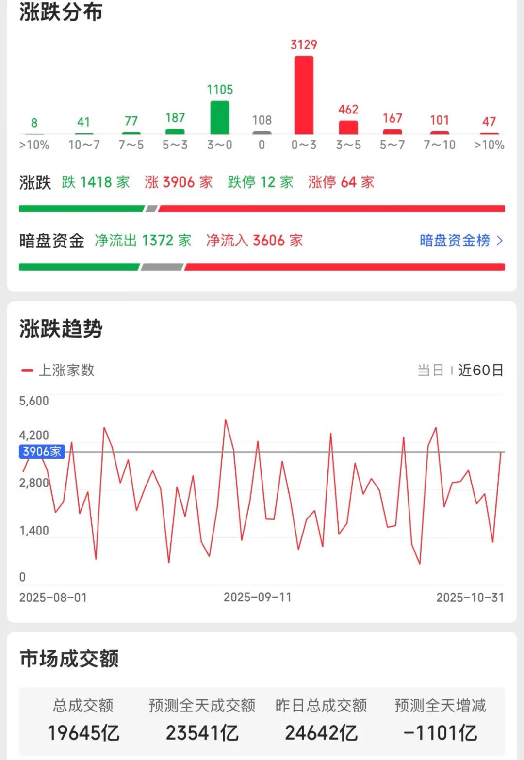 之前往往是指数的表现比个股强,基民比股民的体验要好;但今天反过来了,盘中各大指数一片绿,而近4000家公司是上涨的,只有1千多家公司是下跌的。