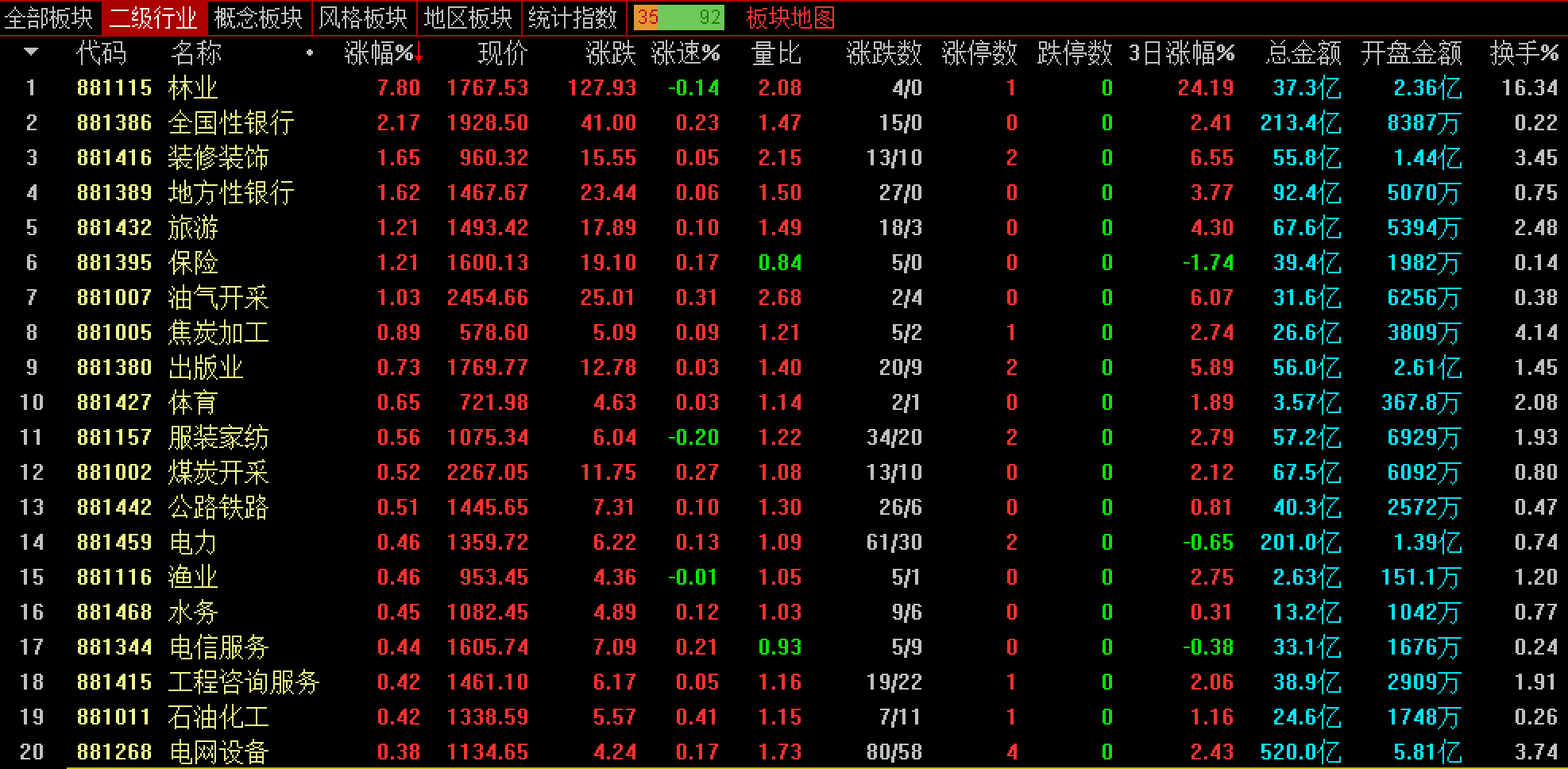 进入11月,市场一直在窄幅调整,还连续缩量,能明显感觉到市场信心不足,日 K 线也围着 10 日均线来回波动。现在防御风格的板块更占优,风险偏好降低了。过权重的护盘行情估计难持续,科技成长类板块眼下还得先消化手里的抛压,暂时没法快速起势。现在我们看看板块趋势:#亚马逊签下OpenAI千亿算力大单#