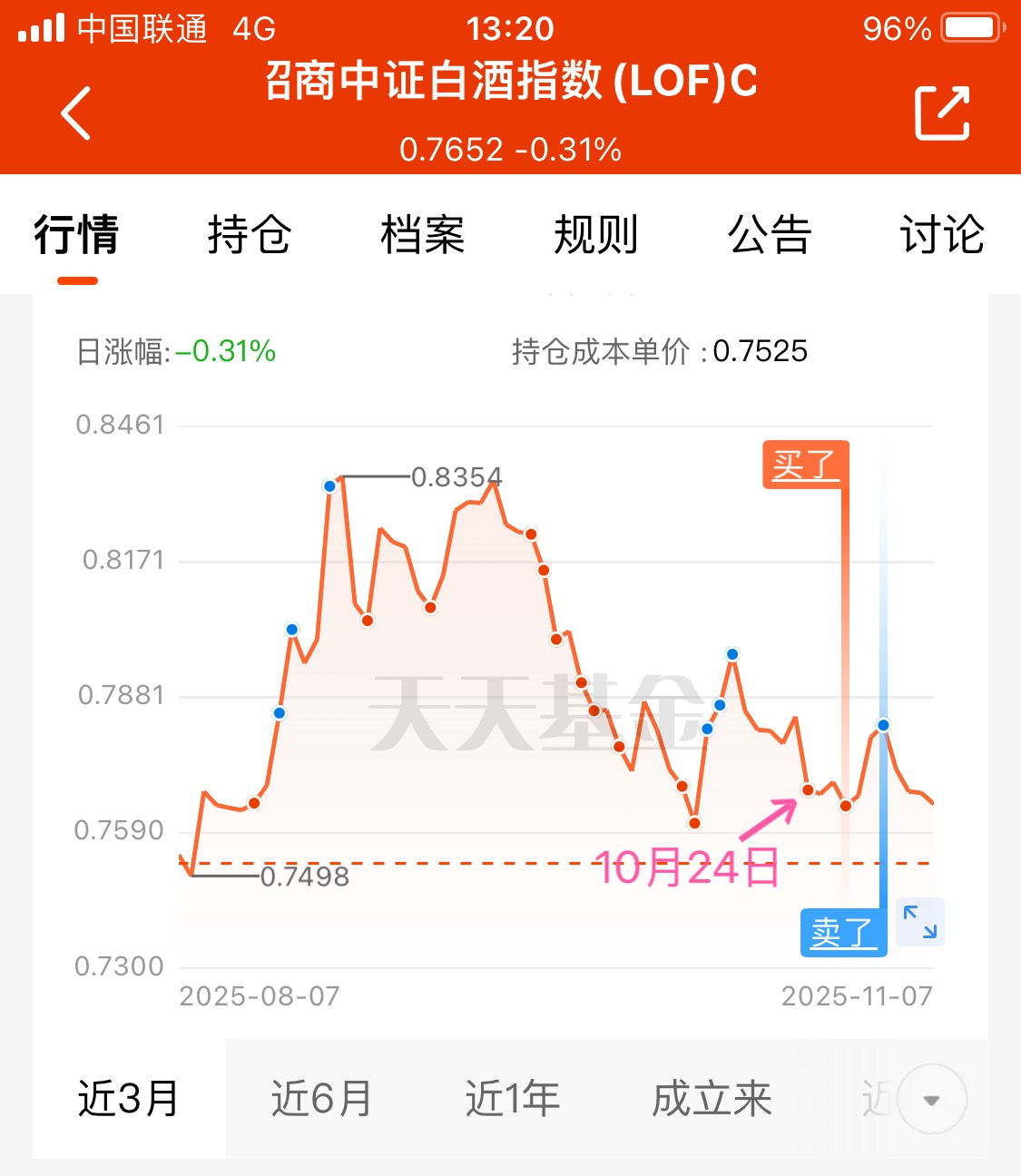 今天白酒迎来久违的大涨,这是对耐心资金的回报。操作上,T10月24日加仓的份额(见图,另加一张我三个月来白酒的操作点阵图,供参考)。