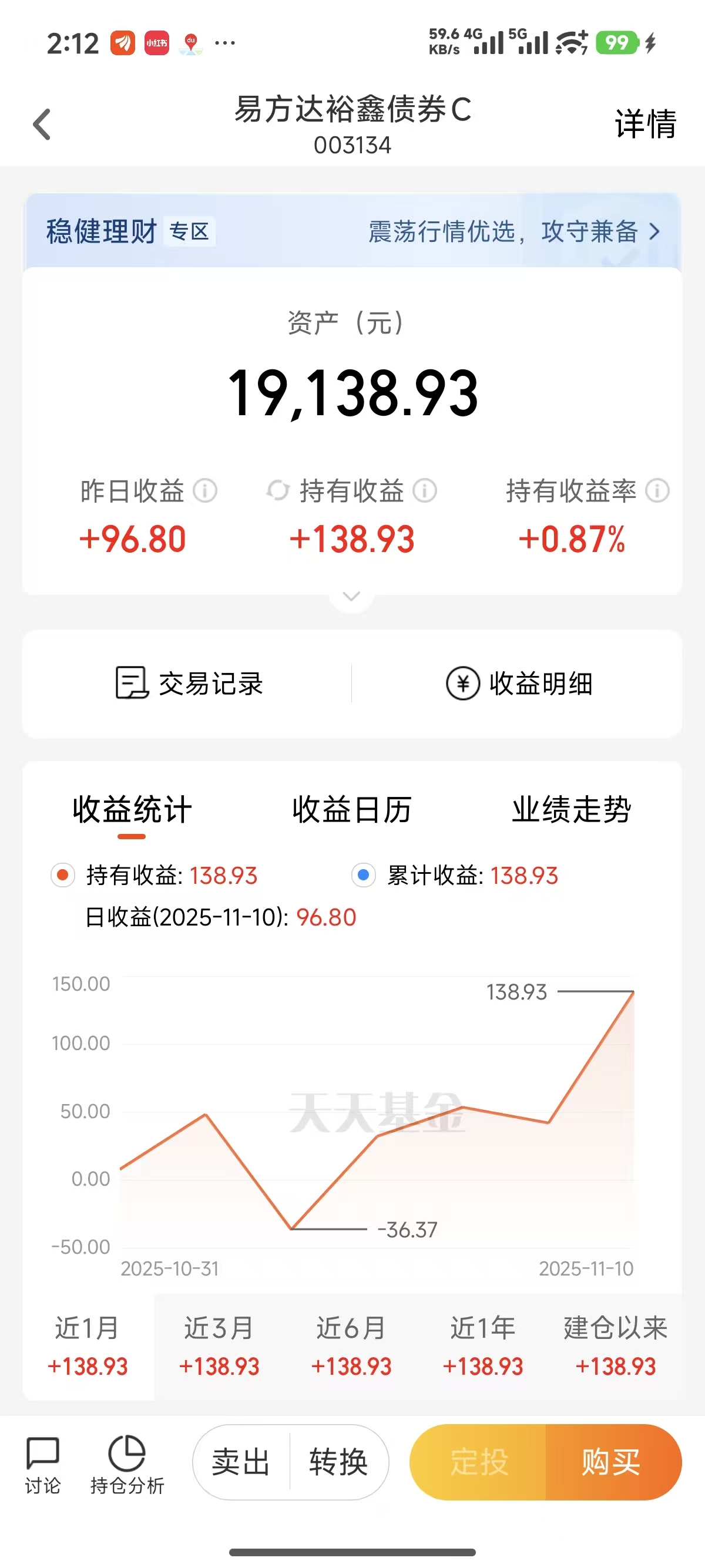从业绩看,前几天刚刚加仓,这只基金持有收益 + 138.93 元;作为固收 + 产品,它既具备债券基金的 “稳”(严控回撤,适配防御需求),又有权益资产的 “攻”(参与市场轮动,博取超额收益),是震荡市资产配置的 “黄金拼图”。