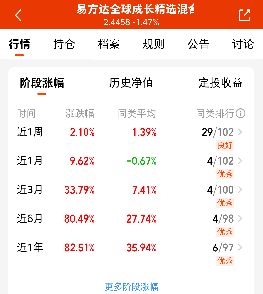 科技板块调整过后,行情要重启啦。,但是单独看一个市场容易踏空或者风险过高,易方达全球成长精选混合(QDII)C是布局全球科技的,覆盖美股、港股、A股三地市场,一键布局AI算力、光模块、芯片,今年以来就持续上涨,通过及时调仓回撤控制的好,可以关注一下。