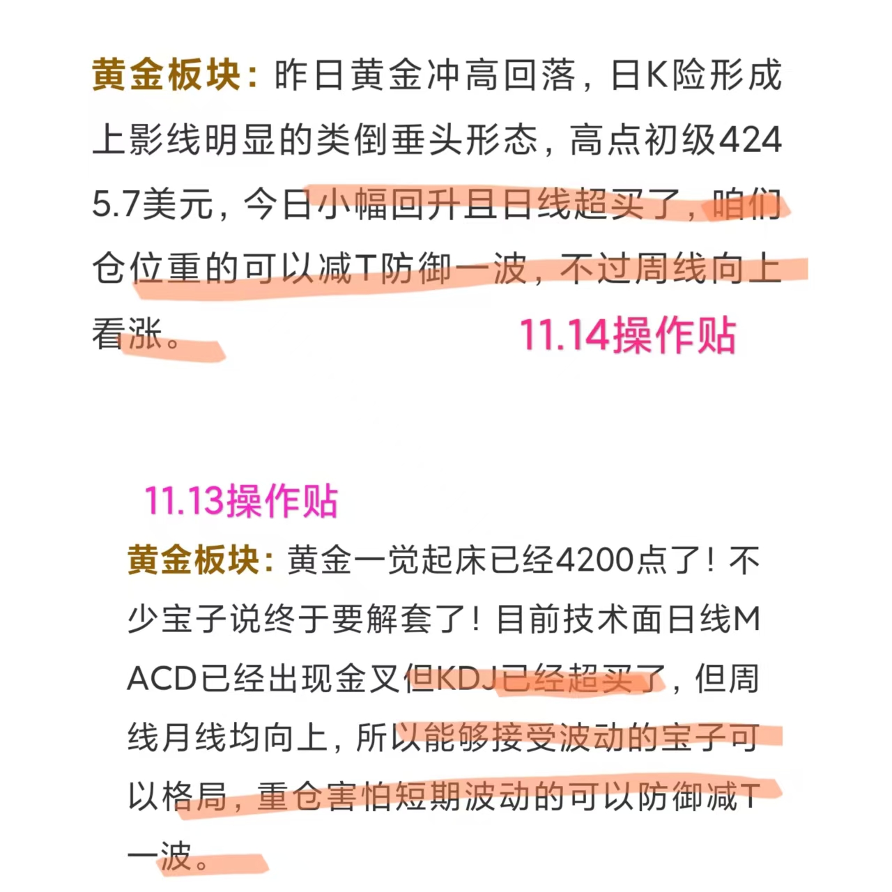 好在兜兜周四、周五的操作贴也算是精准踩中节奏!之前提醒黄金日线超买,仓位重的宝子减T防御一波,晚间国际黄金直接一度大跌超3%,这波回调其实很正常,完全不用慌,回调就是捡便宜筹码的机会,周线看涨逻辑没破,没动的宝子安心拿住,用时间换空间就好啦!