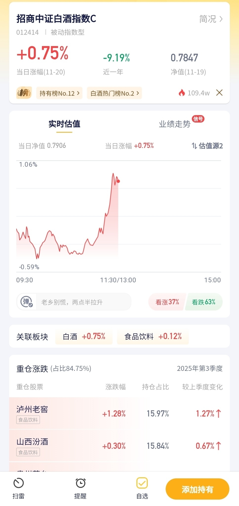 - 招商中证白酒指数C今日预估涨幅+0.75%!