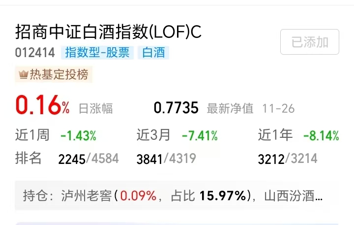 A 股今日小幅低开后震荡拉升,六部门印发促销费新方案落地,消费板块后震荡走强,白酒板块小幅上涨。我觉得白酒板块当前估值仍处低位,向下空间有限。加上三季度行业底部已确认,叠加“十五五”扩内需政策催化以及春节消费旺季回暖的支撑,明年二三季度有望渐进式回暖。$招商中证白酒指数(LOF)C(OTCFUND|012414)$重仓茅台、五粮液等龙头,现在位置不错,用定投方式布局性价比更高,我也耐心蹲守一波修复行情。
