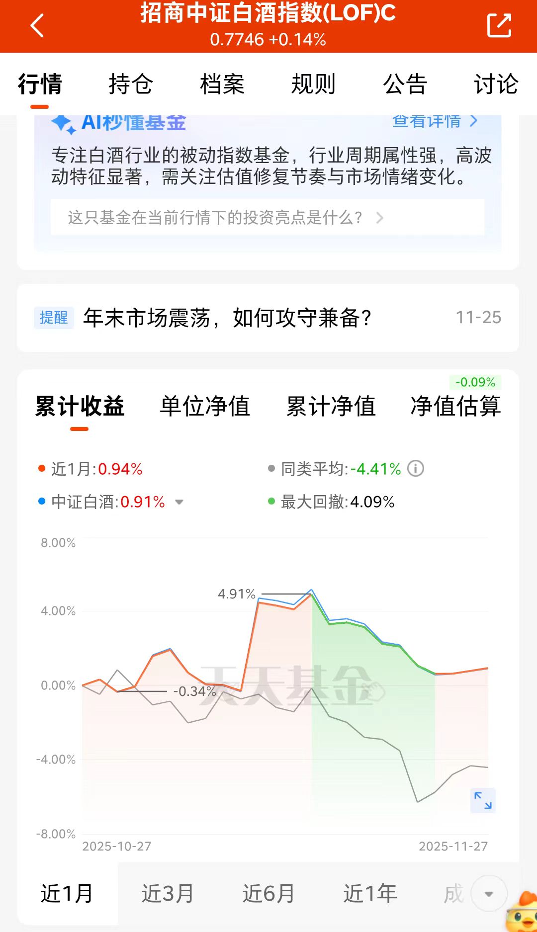 今天股市行情继续拉升,我看好年底白酒行情,不仅需求增加,而且大部分经销商9月底完成全年配额打款、10月中基本到货;部分大商在10月底之前基本也执行完毕。茅台经销商只有极个别是亏损的,大部分经销商还是能盈利。低位可以逐步开始布局了。$招商中证白酒指数(LOF)C(OTCFUND|012414)$就是重仓贵州茅台,泸州老窖,山西汾酒,可以低位布局了。