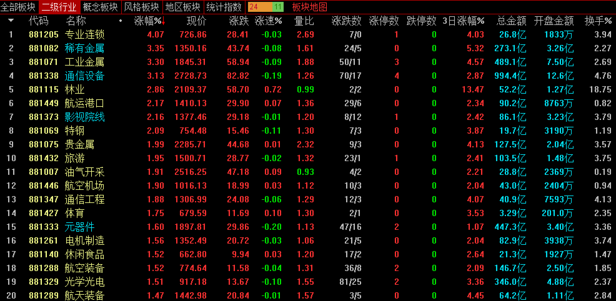 日线级别上涨趋势板块有: