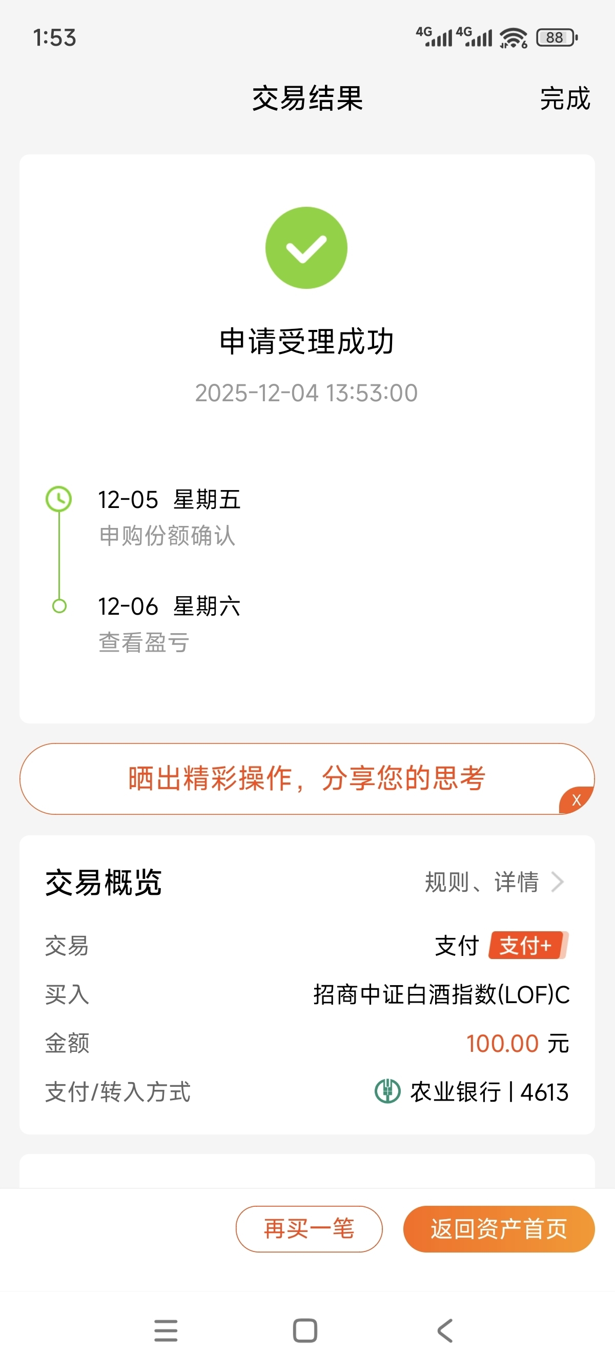 三大指数今天探底回升。不过整体还是一个分化上涨格局。今天的白酒再次创出了调整新低。这个位置也到了前期主力的筹码区间。我觉得反弹可能也要开启了。而且马上进入春节交易周期。白酒有望迎来消费高峰。所以这个位置我看好倒车接人的机会。今天开始布局关注已久的$招商中证白酒指数(LOF)C$ 这是聚焦白酒的指数基金。紧跟中证白酒指数。持仓全部就是优质的白酒龙头,随着消费反弹,白酒长期的表现我依然有信心。今天我也开始定投了。
