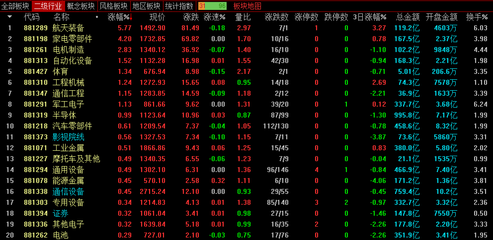 今天沪指走窄幅调整,又回踩了五日均线才止跌,好在多元金融、房地产、有色这些权重板块发力,带动指数反弹翻红。不过短期均线的支撑力度不算强,下午还得看大金融护盘力度。现在我们看看板块趋势: