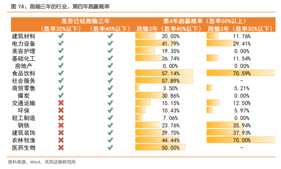 如果进一步放宽筛选条件,并综合历史数据计算“第四年跑赢的条件概率”,我们会发现一些更具潜力的方向。