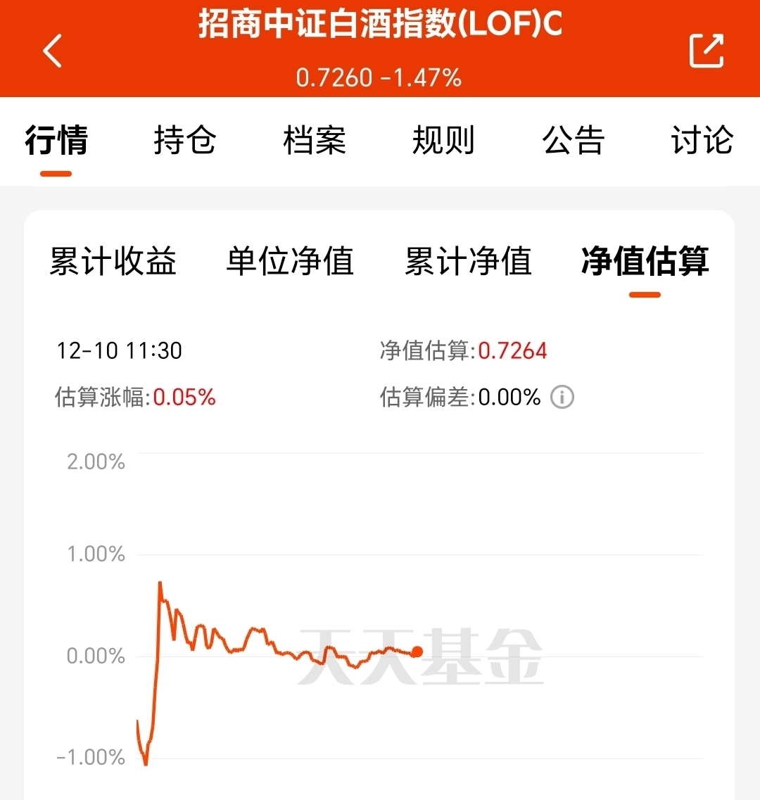 截至发文前$招商中证白酒指数(LOF)C$ 预计上涨0.05%。