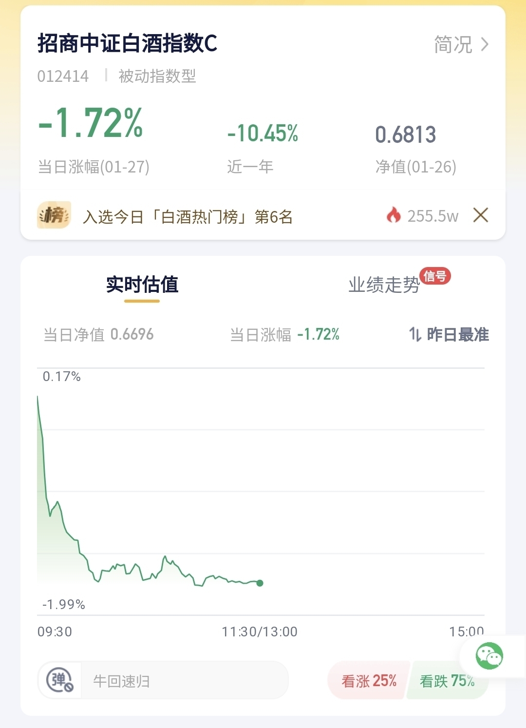 招商中证白酒指数C今日预估跌幅-1.72%!