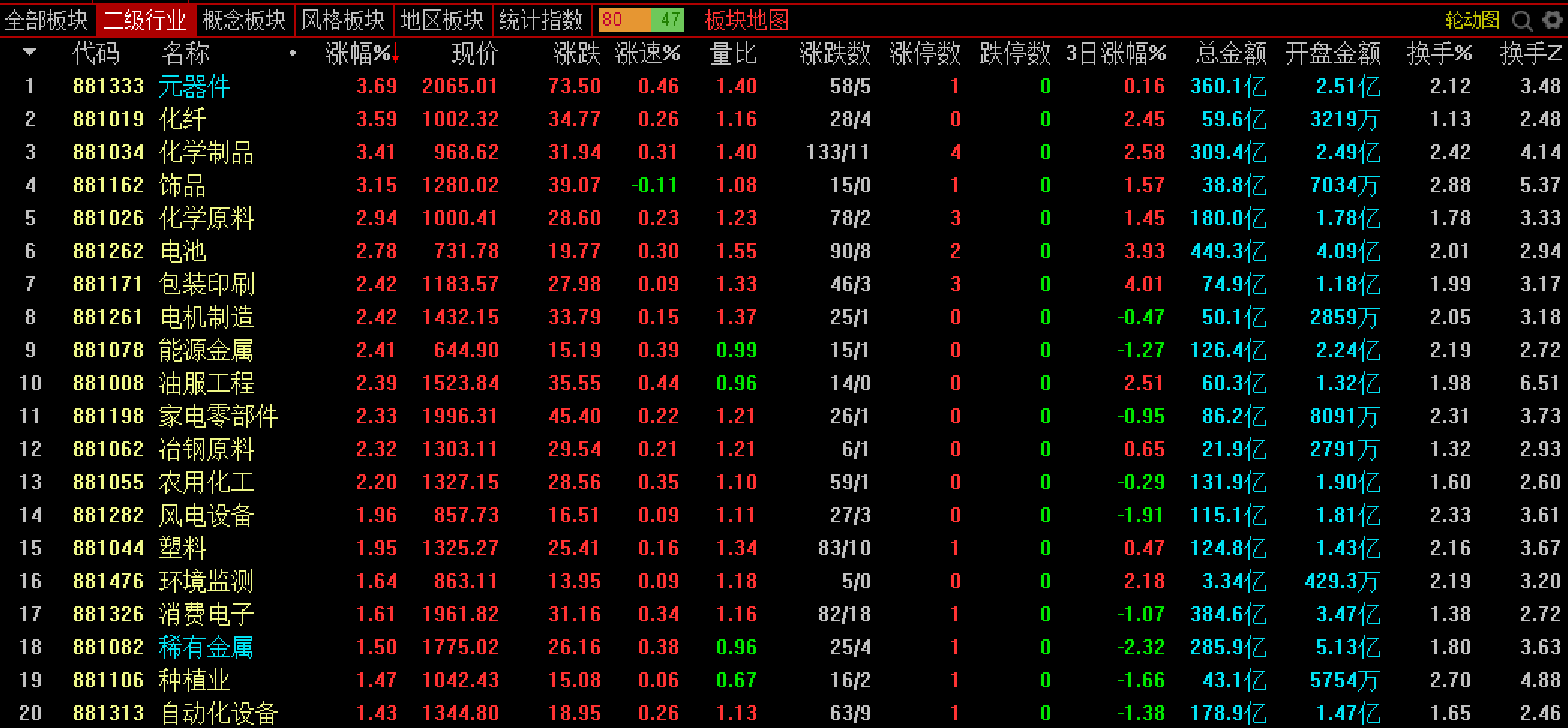 日线级别上涨趋势板块有: