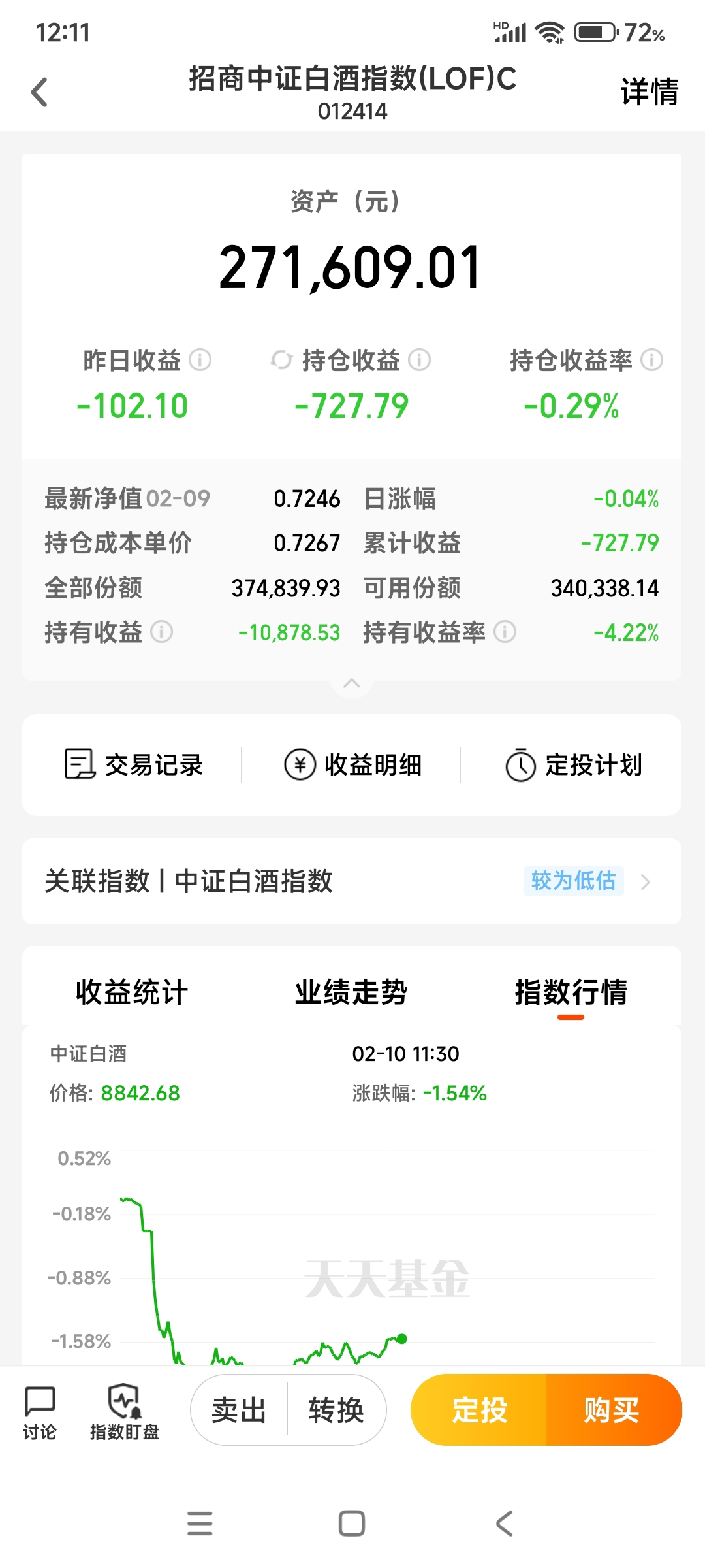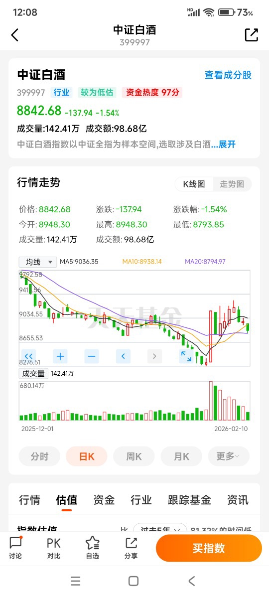2026年2月10日,中证白酒指数回调至8842.68点,我在止盈后第三次加仓招商中证白酒指数(LOF)C。