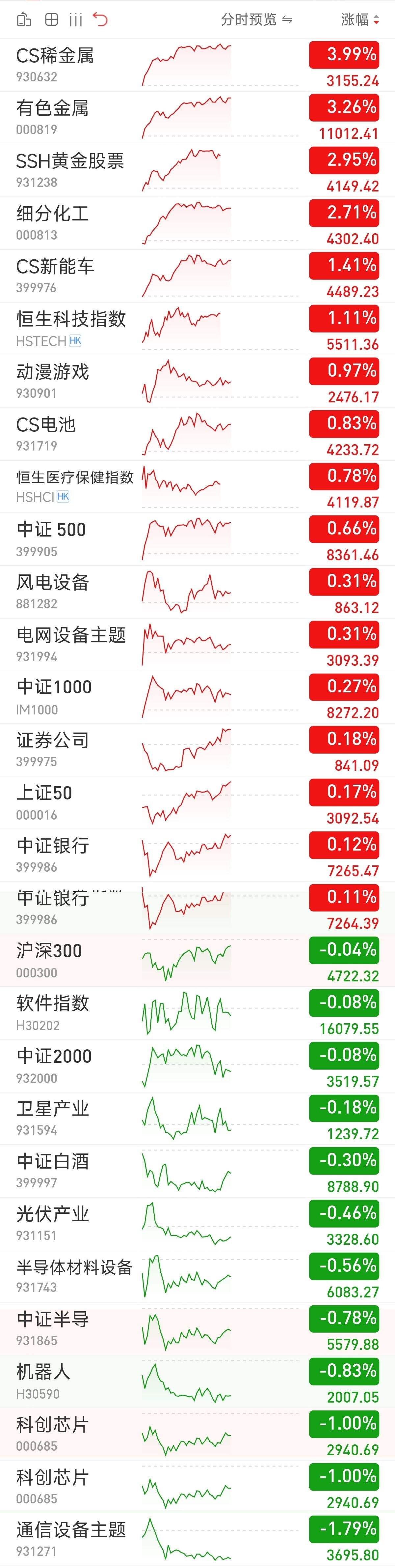来了,来了,投资朋友们下午好!今天整体属于一个盘整的行情,除了有色金属涨幅比较多之外,很多板块都是小涨小跌的一个行情,整体上和前面分析的差不多,节前不会大起大落的波动,而是小涨小跌震荡度过了。