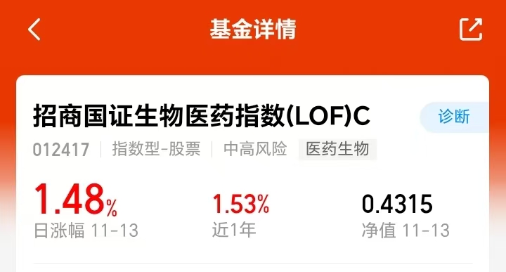 $招商国证生物医药指数(LOF)C(OTCFUND|012417)$跟踪国证生物医药指数,聚焦行业核心龙头,适配哑铃配置逻辑,三季度行业业绩已现边际改善,生物医药赛道也调整比较充分了,眼下择机布局起来是不错的。