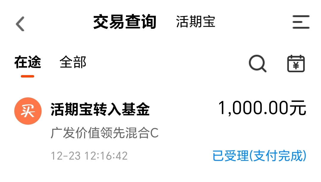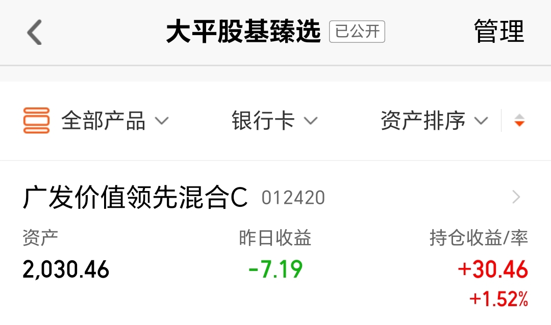 今天我买入$广发价值领先混合C(OTCFUND|012420)$1000块钱。