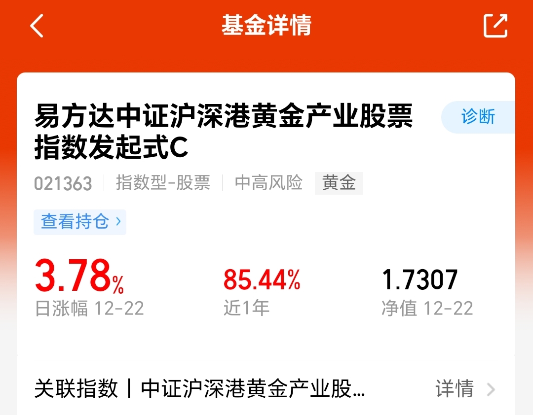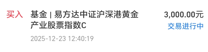 今天我买入$易方达中证沪深港黄金产业股票指数发起式C(OTCFUND|021363)$3000块钱。