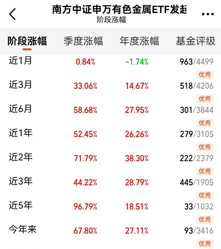 有色板块的独立性越来越明显!传统需求稳得住,新能源需求又打开成长空间,这就是“周期+成长”双属性加持。$南方中证申万有色金属ETF发起联接A$(004432)近一月涨4%,近三月涨39%,弹性十足。最近市场分化,银行股涨得好,但有色调整后性价比更突出。基金经理崔蕾管理这只基金多年,任职回报超159%,策略稳定。对于想抓大周期又怕波动大的散户,这种指数基金既能跟上板块涨幅,又避免了个股黑天鹅。#科技热点摊开业啦#