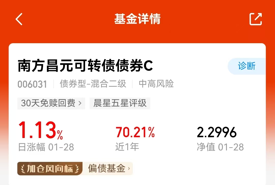 在当前市场环境下,进行合理的资产配置很重要。$南方昌元可转债债券A$(006030)这类主要投资可转债的基金,可以作为一种配置选择。它近一年71%的涨幅和同类排名第一的成绩,该基金要求投资于可转债的比例不低于非现金基金资产的80%,这使其在债基中属于风格比较鲜明的。这种侧重于可转债的投资方式,意味着它追求在控制下行风险的基础上争取超额收益,其波动性通常介于股票基金和纯债基金之间。投资者需要理解,这类产品与传统的纯债基金在风险收益特征上有明显区别。#暖阳创作计划#