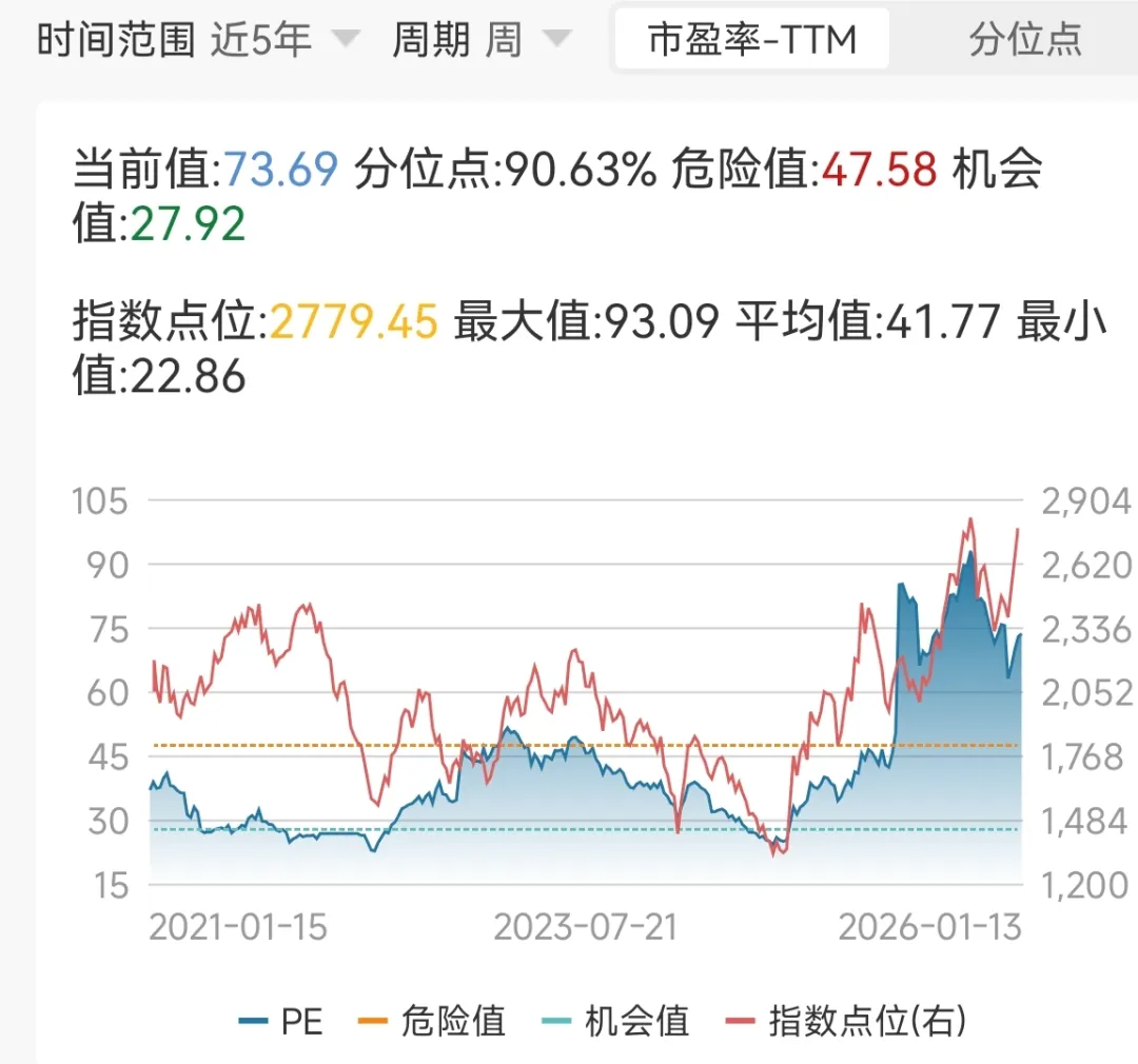 国证机器人指数目前PE约为74倍,处于近5年90.6%的分位数。(截止2026-1-14,数据来源:wind)