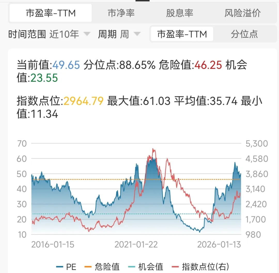 中证新能指数目前PE约为50倍,处于近10年88.6%的分位数。(截止2026-1-14,数据来源:wind)
