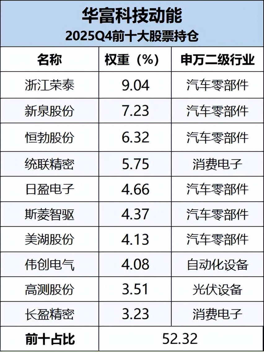 下表为华富科技动能最新公布的前十大持仓,重点布局了机器人最核心、最确定的环节——执行器(关节)。