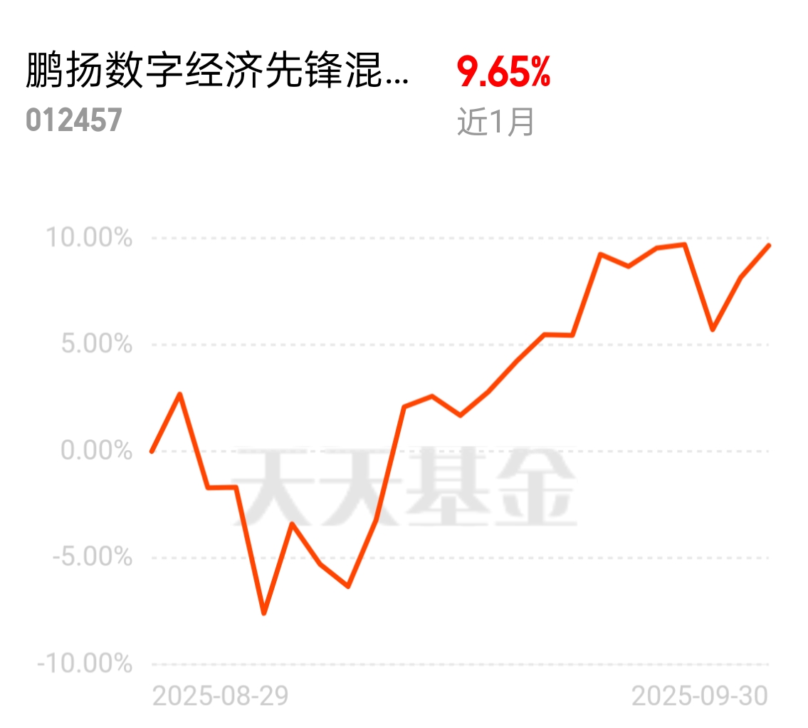 $鹏扬数字经济先锋混合C$一个月上涨9.6%,确实不错哦,加仓一笔上车哦。