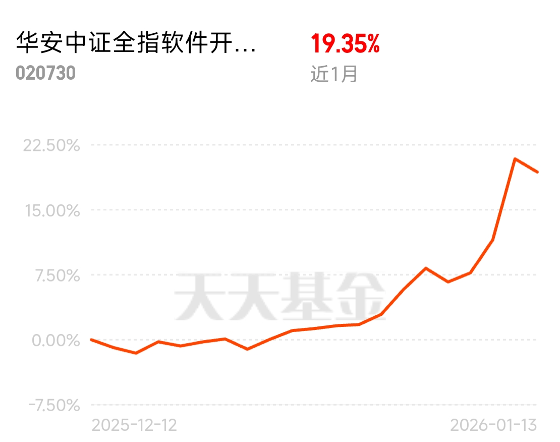 挖到软件界宝藏 ETF,$华安中证全指软件开发ETF发起式联接C$ 近 1 月涨 19.35%,覆盖龙头分散风险,普通人躺赚科技钱