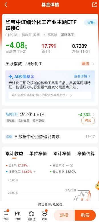 $华宝中证细分化工产业主题ETF联接C$近期市场波动下,化工这类周期板块处于底部