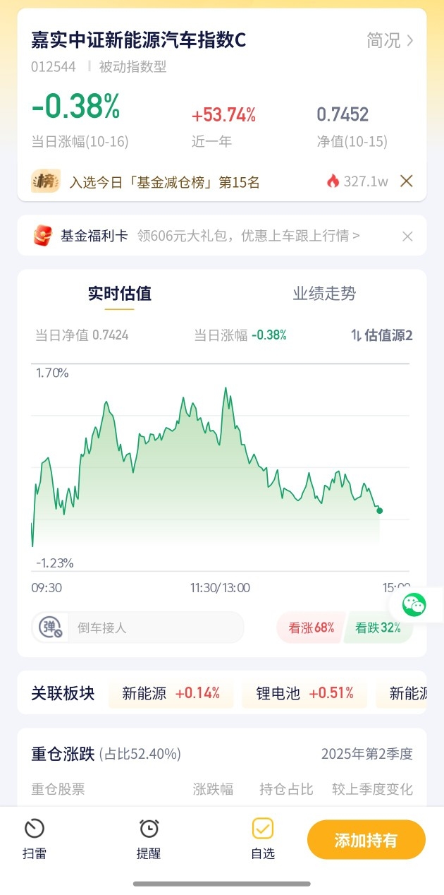 【嘉实中证新能源汽车指数C基金估值播报+10.16行情】嘉实中证新能源汽车指数C今日估算跌幅-0.31%!收益提前看+新能源汽车板块今日稍显弱势. 今日A股市场情绪有点复杂,涨的板块有不少亮点,跌的板块也有各自的原因,得好好分析分析。