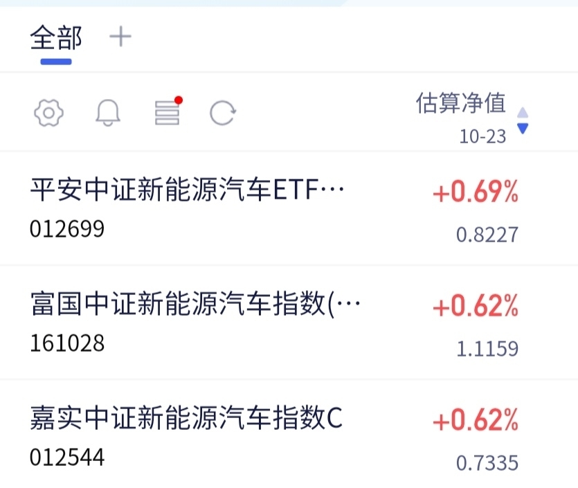 新能源汽车还有行情,开始反弹了。$平安中证新能车ETF联接C$最新估值上涨了0.