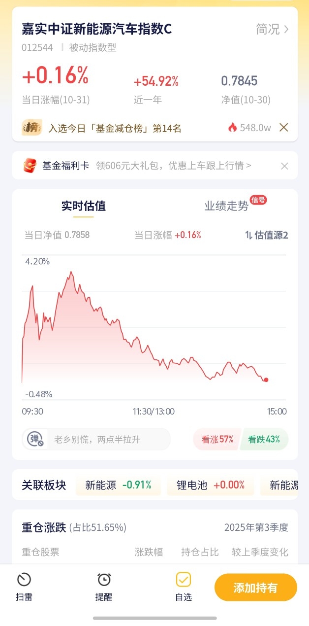 【嘉实中证新能源汽车指数C估值播报+10.31行情】