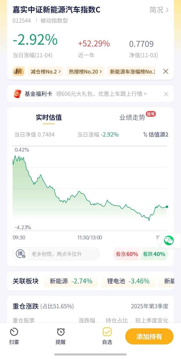 7. 【嘉实中证新能源汽车指数C估值播报+11.04行情】