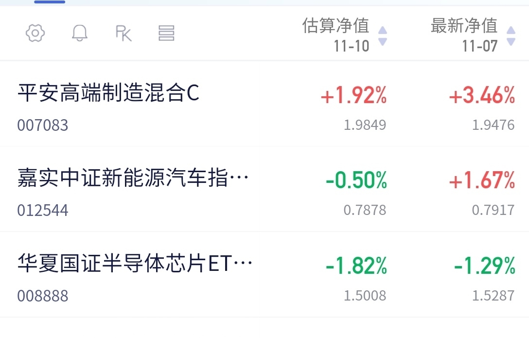 2025年11月10日,光伏板块表现活跃,多只个股涨停。$平安高端制造混合C$ 估值涨1.92%,表现强劲,稳稳得。$嘉实中证新能源汽车指数C$ 回撤0.50%,$华夏国证半导体芯片ETF联接C$ 回撤1.82%。加油。