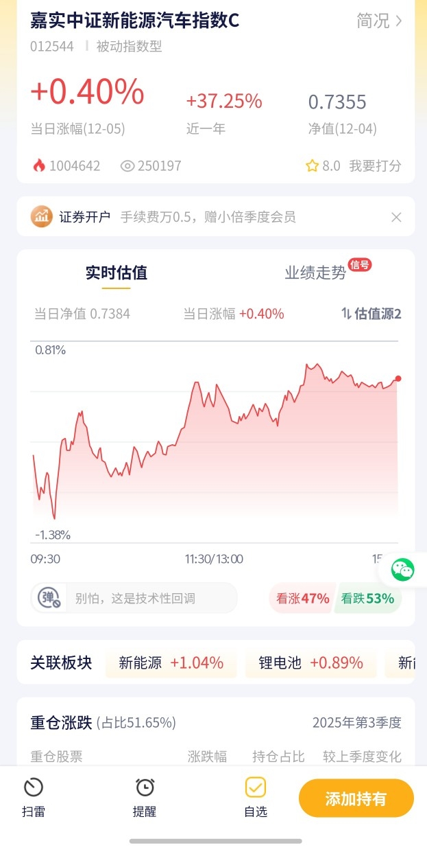 17. 【嘉实中证新能源汽车指数C估值播报+12.05行情】
