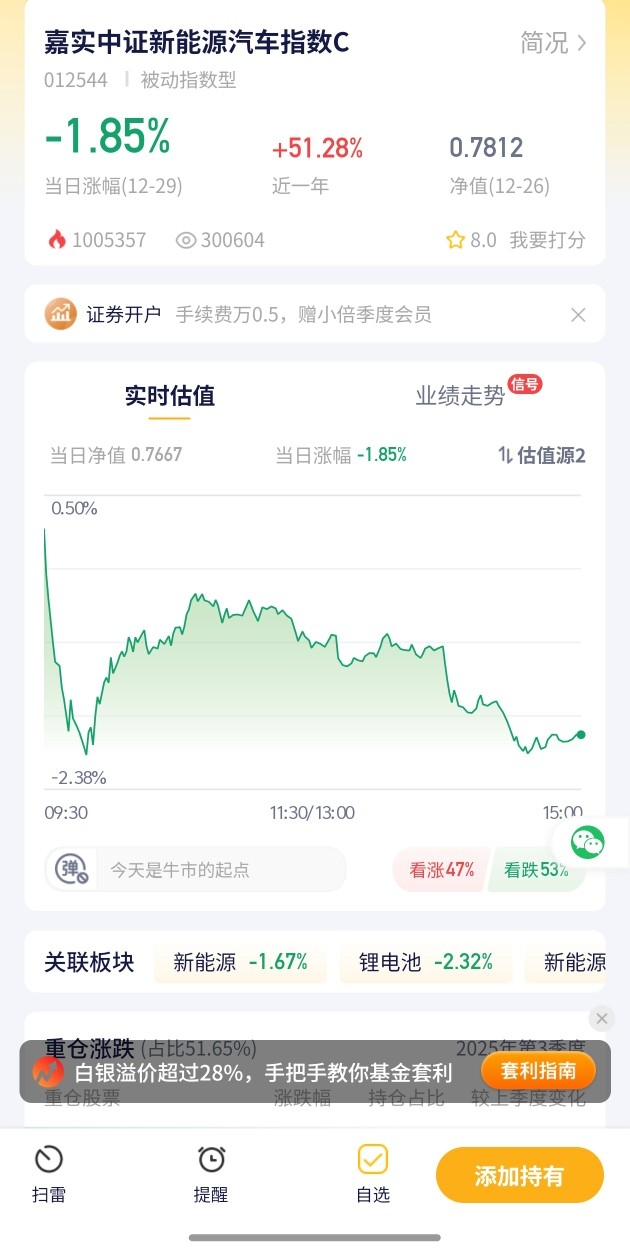 8.【嘉实中证新能源汽车指数C估值播报+12.29行情】