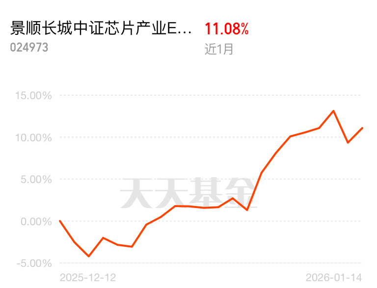 芯片封装测试环节订单增加,行业整体需求旺盛,AI 仍是市场主线,芯片是核心硬件,昨天芯片走强势今日稍回调,比人工智能跌的少,景顺长城中证芯片产业 ETF 联接 C 紧跟芯片产业指数,近 1 月 11.08%,反弹超有劲儿,申购 0 费率 7 天免赎回费,持有成本更优。