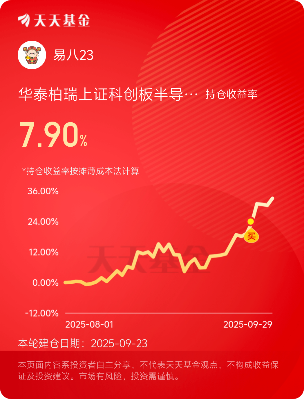 $华泰柏瑞上证科创板半导体材料设备主题ETF发起式联接C$ 今天估值又涨了1.81%,近一个月收11.61%,半导体设备板块表现强势,继续看好。#晒收益#
